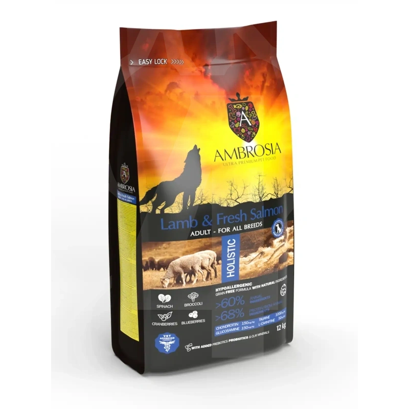 Ambrosia Lambaliha & Värske Lõhega teraviljavaba kuivtoit täiskasvanud koertele 2kg