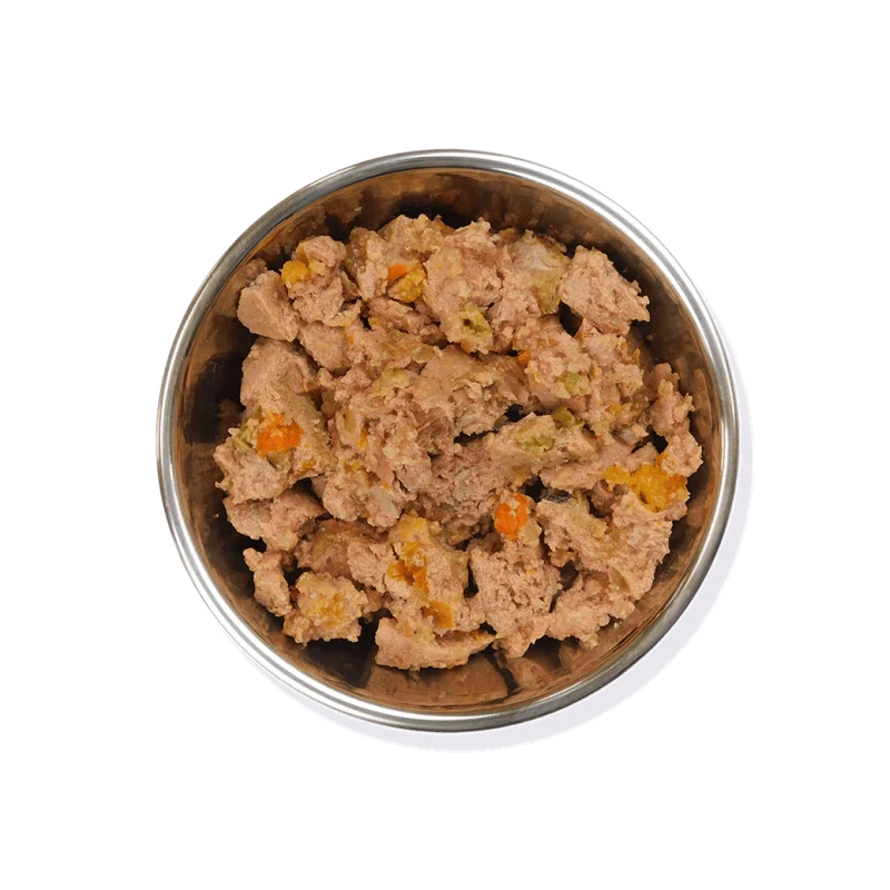 Täisväärtuslik teraviljavaba märgtoit täiskasvanud koertele, valmistatud 85 % värskest kana lihast ja köögiviljadest.
