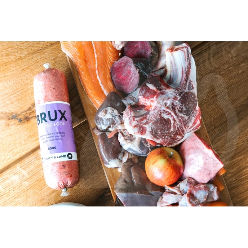 Kalkun 65% (liha + kont 35%, süda 10%, lihasmagu 10%, maks 10%), lammas 20% (liha + kont 10%, siseelundid 10% (kopsud, süda, maks, neerud)), puu- ja köögiviljasegu 8% (õun, porgand, peet), lõhe 7%.
