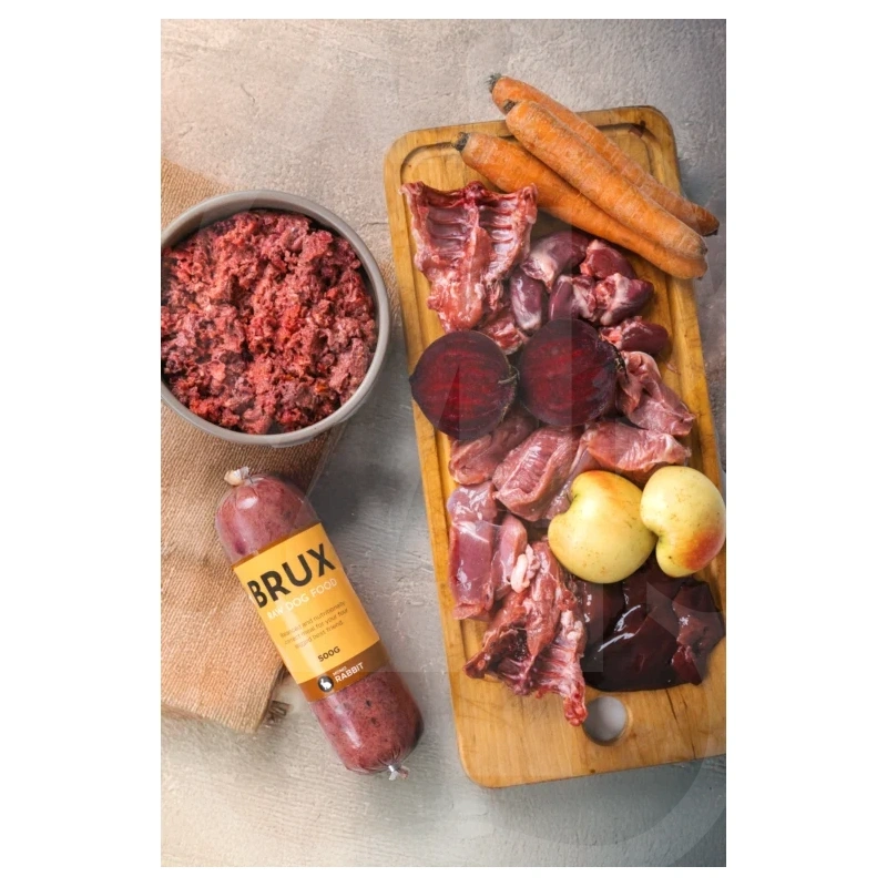 BRUX tasakaalustatud koerte toortoit. Sobilik igas vanuses koerale.