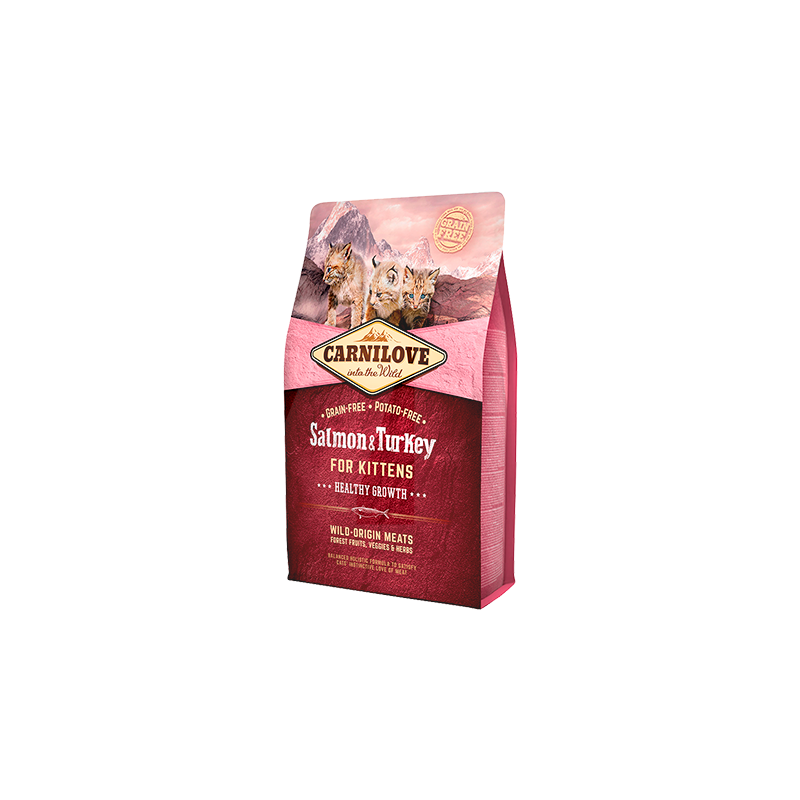 Lõhe ja Kalkuniga täissööt. Teravilja- ja kartulivaba toit kassipoegadele. Retsept on loodud skeleti, lihaste ja organismi kaitsevõime tasakaaluka arengu tagamiseks.
