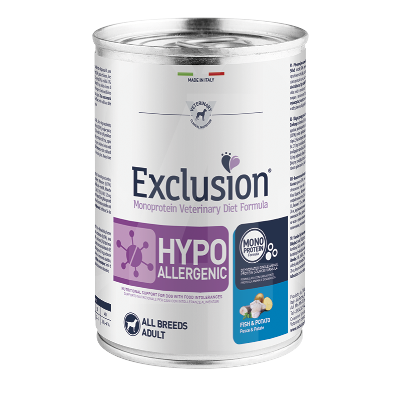 Hüpoallergeenne monoproteiinne dieettoit täiskasvanud koertele, kellel esineb toiduainete talumatusi. Sisaldab ainult ühte loomset valguallikat (kala) ja selekteeritud süsivesikuid. Säilitatud looduslike antioksüdantidega.