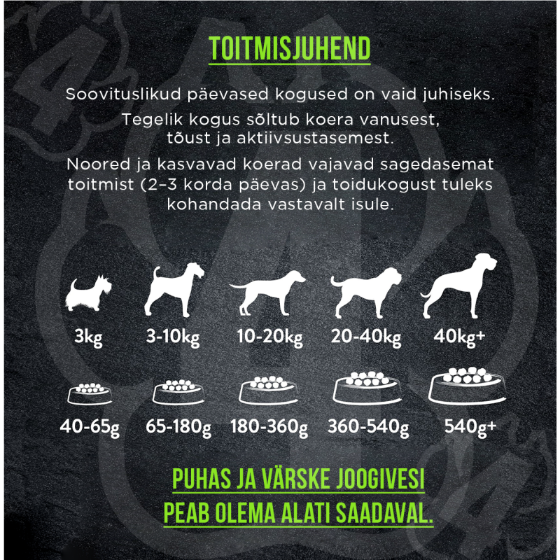 Sobib täistoiduks koertele alates 8. elunädalast.
