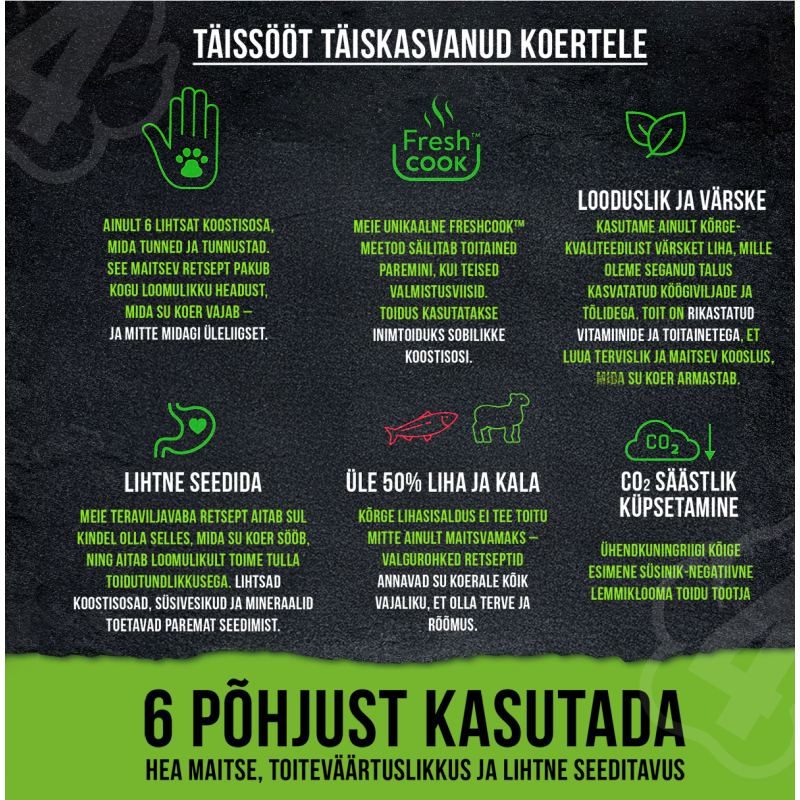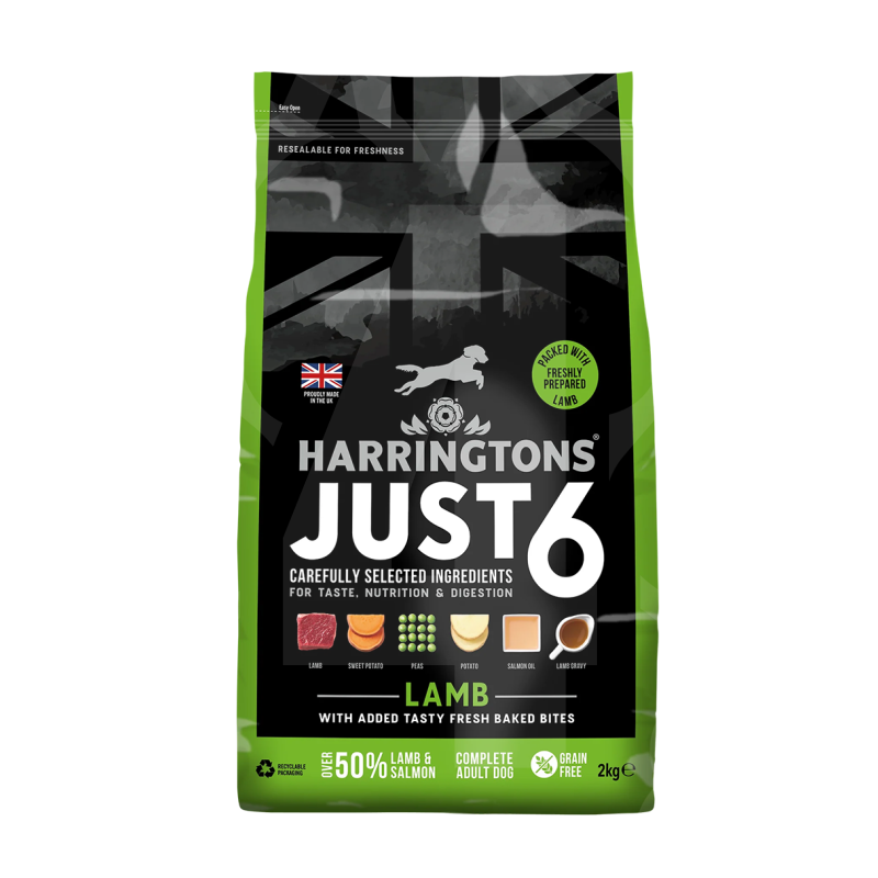 Harringtons Just6 koeratoit sisaldab vaid kuut põhikomponenti, pakkudes sinu koerale lihtsat ja toitvat täissööta. Toit on teraviljavaba ning sisaldab 50,5% liha (lambaliha ja lõhe). Lisatud lõheõli ja rapsiõli annavad oomega-3 ja oomega-6 rasvhappeid, mis toetavad naha ja karvkatte tervist.