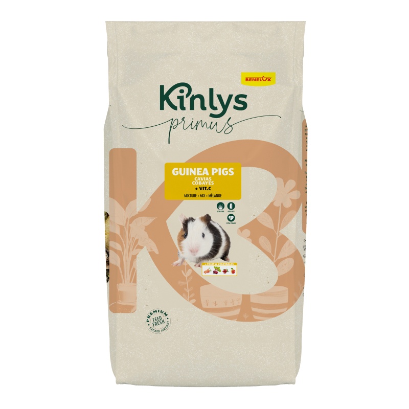 KINLYS PRIMUS Guinea Pigs on tasakaalustatud ja mitmekesine täissööt merisigade igapäevaseks toitmiseks. Sööt on rikastatud vitamiin C-ga, mis on merisigadele eluliselt vajalik, kuna nende organism ei suuda seda ise toota. Hoolikalt valitud teraviljad, seemned ning puu- ja köögiviljad toetavad seedimist, üldist heaolu ja aktiivset eluviisi.