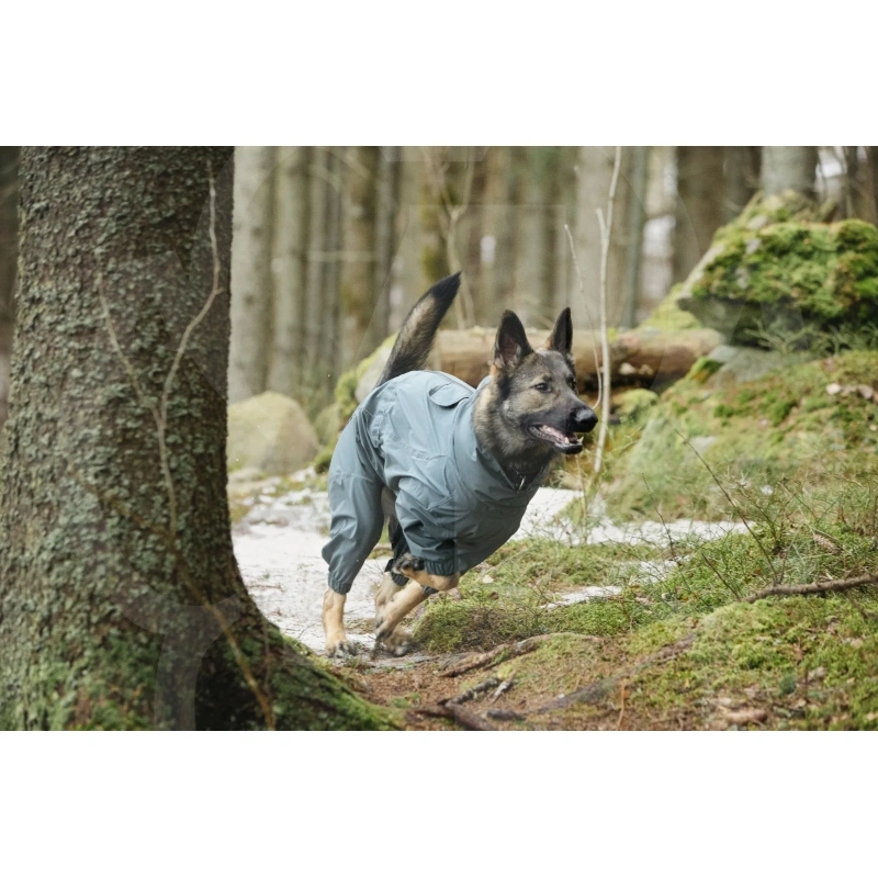 Rukka Pets Protect kombinesoon on praktiline ja kvaliteetne valik koertele, kes armastavad liikumist ka kehva ilmaga. Täielikult veekindlast venivast kangast valmistatud kombinesoonil on teibitud õmblused, veekindel tõmblukk ja kaetud jalutusrihmaava, mis tagavad maksimaalse kaitse vihma ja tuule eest. Reguleeritav kaelus, vöökoht ja jalasääred aitavad saavutada täiusliku istuvuse, samal ajal kui kõrge krae kaitseb koera kaela ja kõrvu külma tuule eest. Kombinesoonil on helkurribad ja logo, mis parandavad nähtavust pimedal ajal. Seljal asuv lukk muudab kombinesooni lihtsasti selgapanekuks ning mugav veniv materjal lubab koeral vabalt liikuda ka kõige seiklusrikkamates tingimustes.
