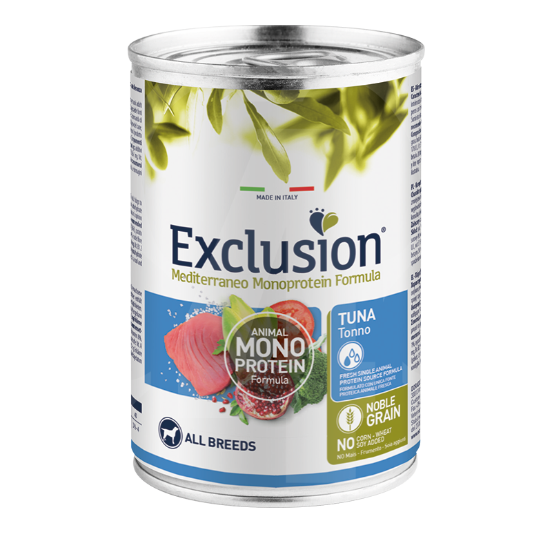 Koera konserv EXCLUSION MEDITERRANEO 400g, tuunikalaga