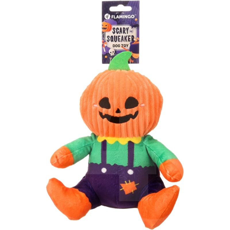 Koera mänguasi Pompo kõrvitsamehike • Pehme plüüs • Soonikriie • Piiksuga • Halloween lõbu • 25cm