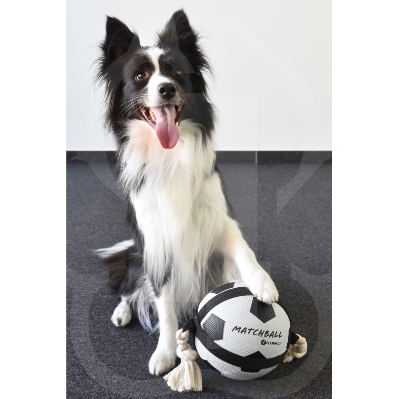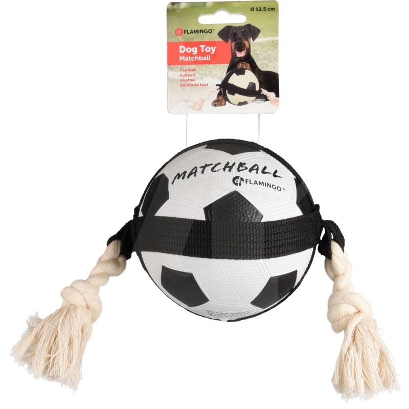 Flamingo Matchball on valmistatud kvaliteetsest kummist ja disainitud meenutama jalgpalli. Mänguasjal on mõlemal küljel tugevad puuvillased köied, mis muudavad selle ideaalseks viske- ja sikutusmängudeks. Palli põrkavus lisab mängule lõbu ja hoiab koera aktiivsena.
