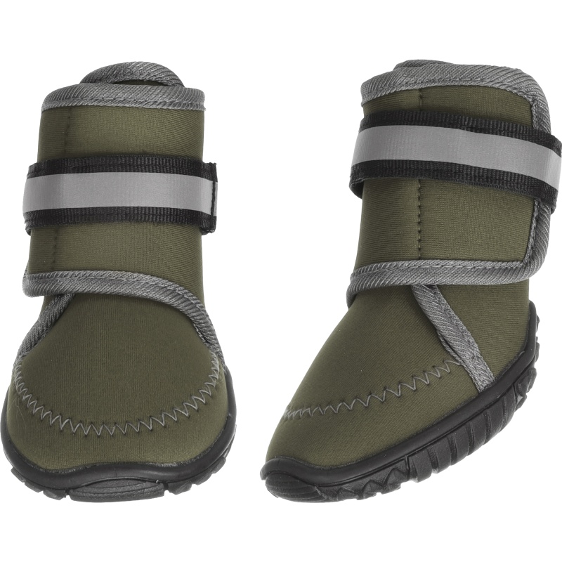 Kaitse oma kaaslase käppasid kuumuse, musta jää, lume ja kareda pinnase eest. Neopreenist jalatsid on pritsmekindlad, libisemisvastase kõva tallaga ja reflektortriipudega parema nähtavuse nimel. Krõpskinnitus tagab paraja istuvuse, lihtne käsipesu. Komplektis 2 jalatsit – ideaalne igapäevaseks jalutamiseks.