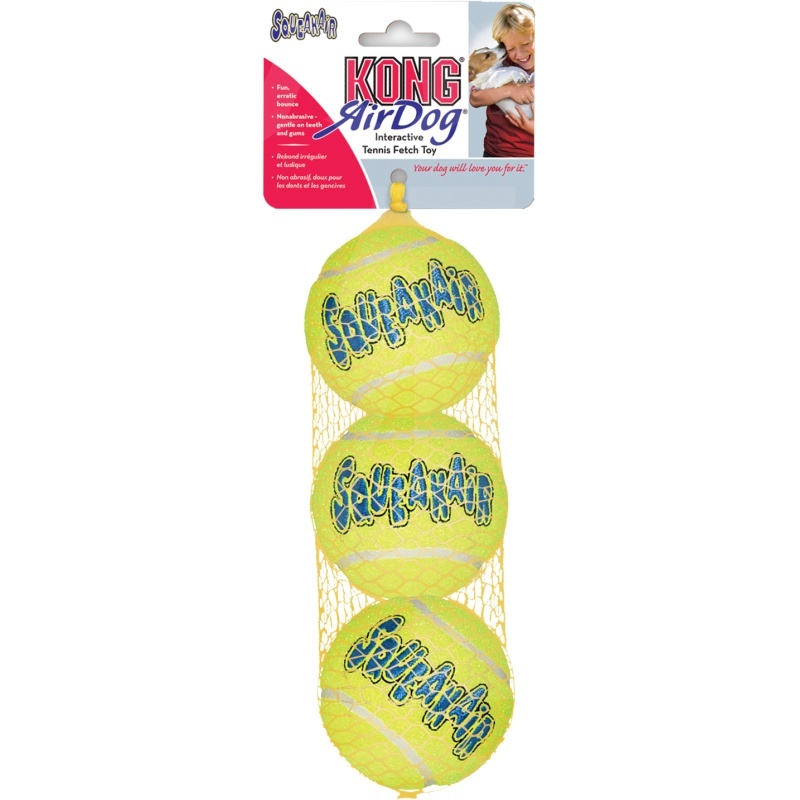 KONG Squeakair Ball ühendab kaks klassikalist koerte mänguasja - tennisepalli ja piiksuva mänguasja -, et luua täiuslik tõmbelelu. Meie vastupidav ja kvaliteetne Squeakair Ball ei kahjusta teie koera hambaid. See on valmistatud spetsiaalse mittehõõrduva vildiga, võrreldes tavaliste tennisepallide abrasiivmaterjaliga.