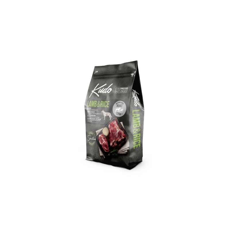 Kudo Lamb & Rice on külmpressitud täissööt keskmist ja suurt tõugu täiskasvanud koertele. Lambalihaga retsept, hea seeduvus ja toitainete parem omastamine toetavad koera immuunsust, seedimist ja üldist heaolu. Külmpressitud graanulid lahustuvad maos kiiresti ega paisu. Sisaldab kõrvitsat, ürte, puu- ja köögivilju ning ei sisalda värvaineid ega GMO-sid.
