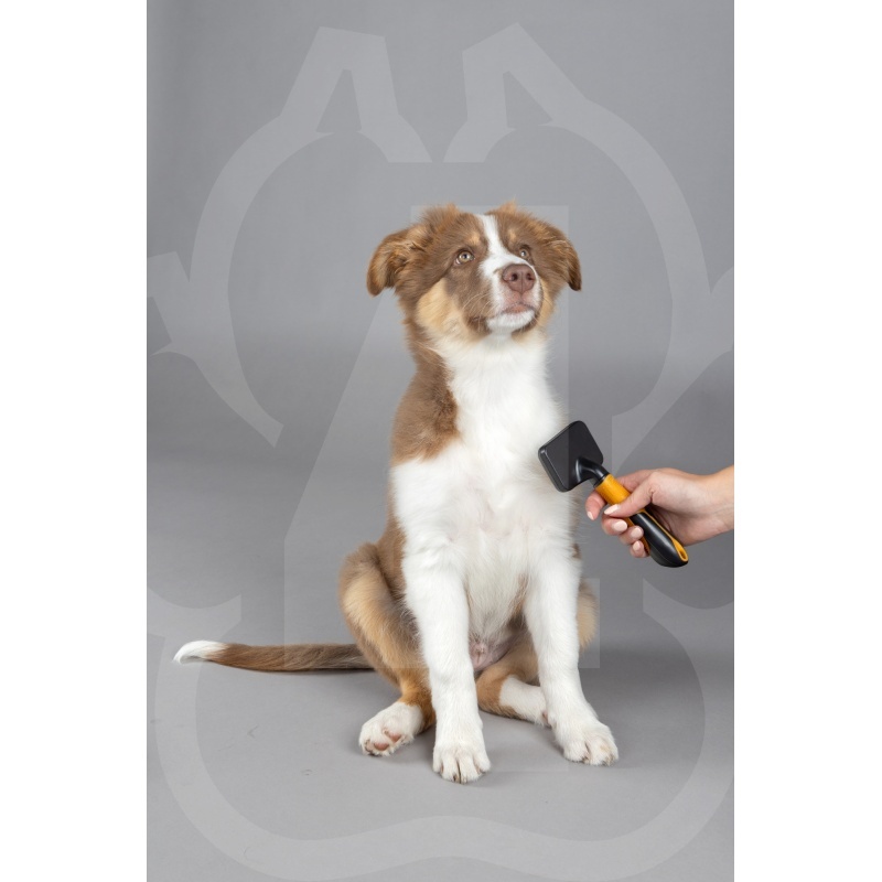 Pehme kamm-hari (slicker) kutsikale, käepidemega
