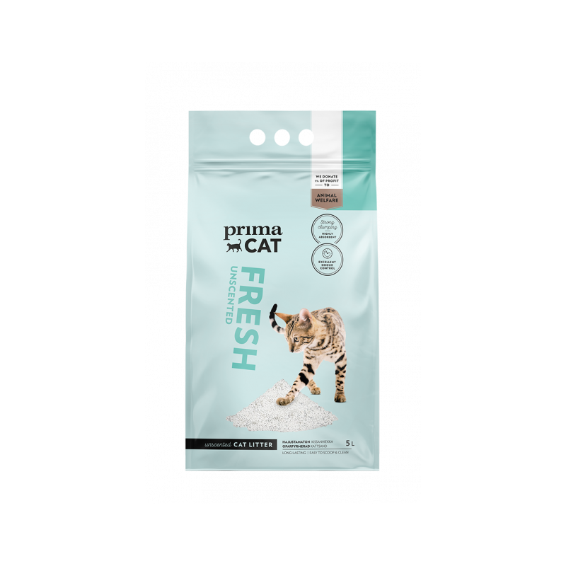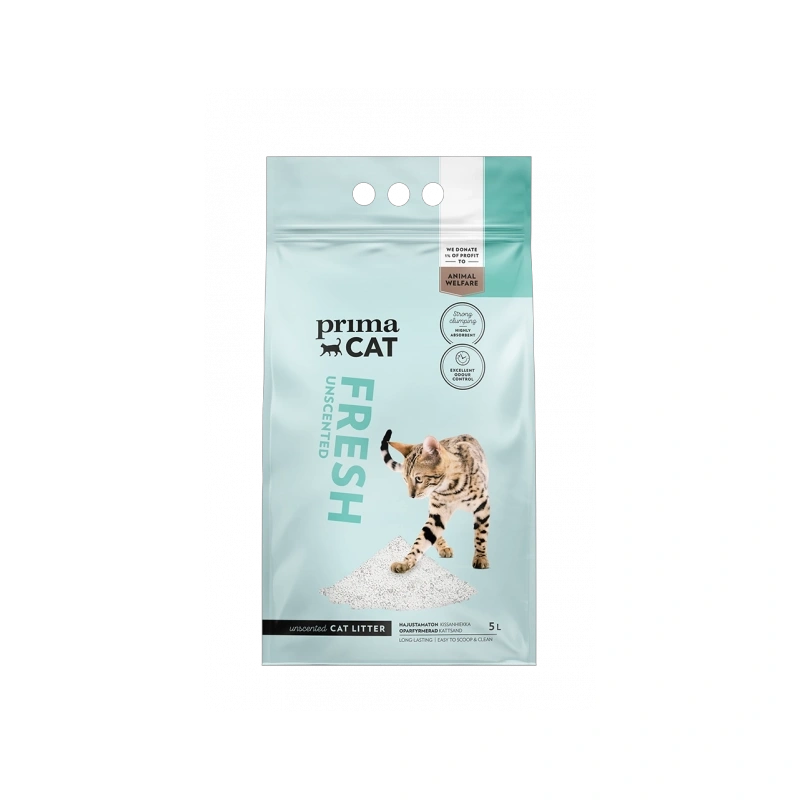 Lõhnatu kassiliiv sobib ka kõige nõudlikumale kassile. PrimaCat Fresh Unscented seob ebameeldivad lõhnad, hoides liivakasti värske ja meeldivana. Valge kaltsiumbentoniit on looduslik savi, mis moodustab kiiresti tihke ja vastupidava paakpalli, muutes puhastamise lihtsaks ja tagades liiva pika kestvuse.