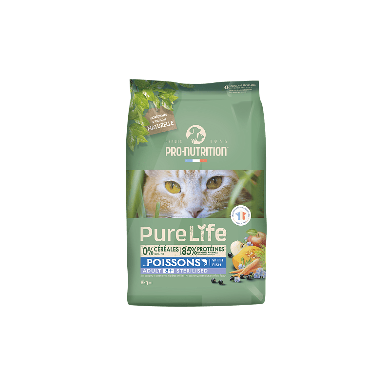 PureLife kassi kuivtoit steriliseeritud eakale kassile pardiliha ja valgekalaga teraviljavaba 2kg