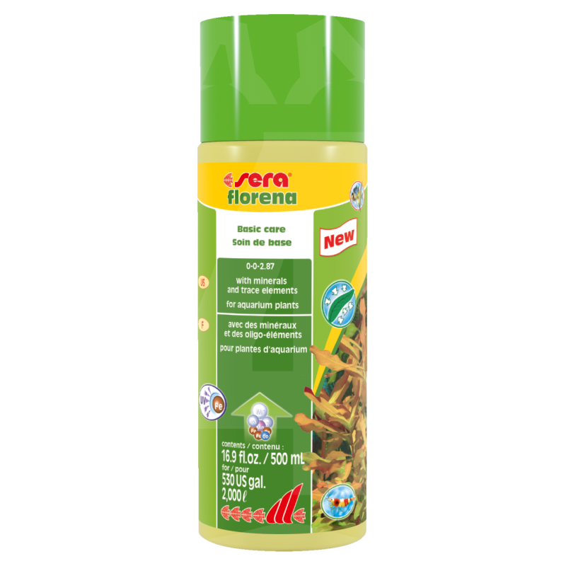 Sera FLORENA vedel täisväärtuslik väetis soodustab värvuse intensiivsust ja suurepärased lehed. Sera FLORENA sisaldab rauda ja kõiki terve ja tugeva kasvu jaoks vajalikke mineraale ja mikroelemente, samas on nitraatidest ja fosfaatidest vabad, sest need toitained sisalduvad akvaariumis piisavas koguses. Soovitame õige doseerimise tagamiseks teha iganädalase kontrolli SERA iron-TEST abil.