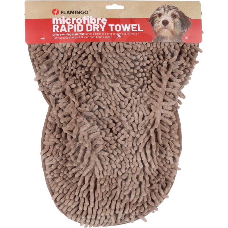 Aseta käed rätiku taskutesse ja kuivata koera karva õrnade patsutavate või pühkivate liigutustega. Sobib kasutamiseks nii kodus kui ka reisil.