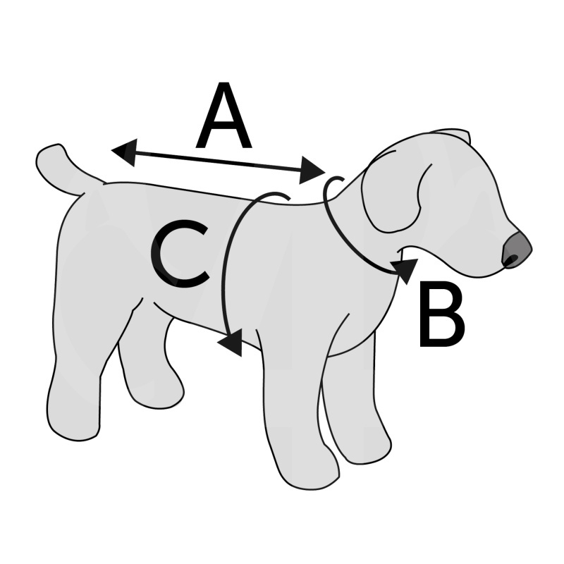| Suurus | A (selja pikkus) | B (kaela ümbermõõt) | Tootenumber |